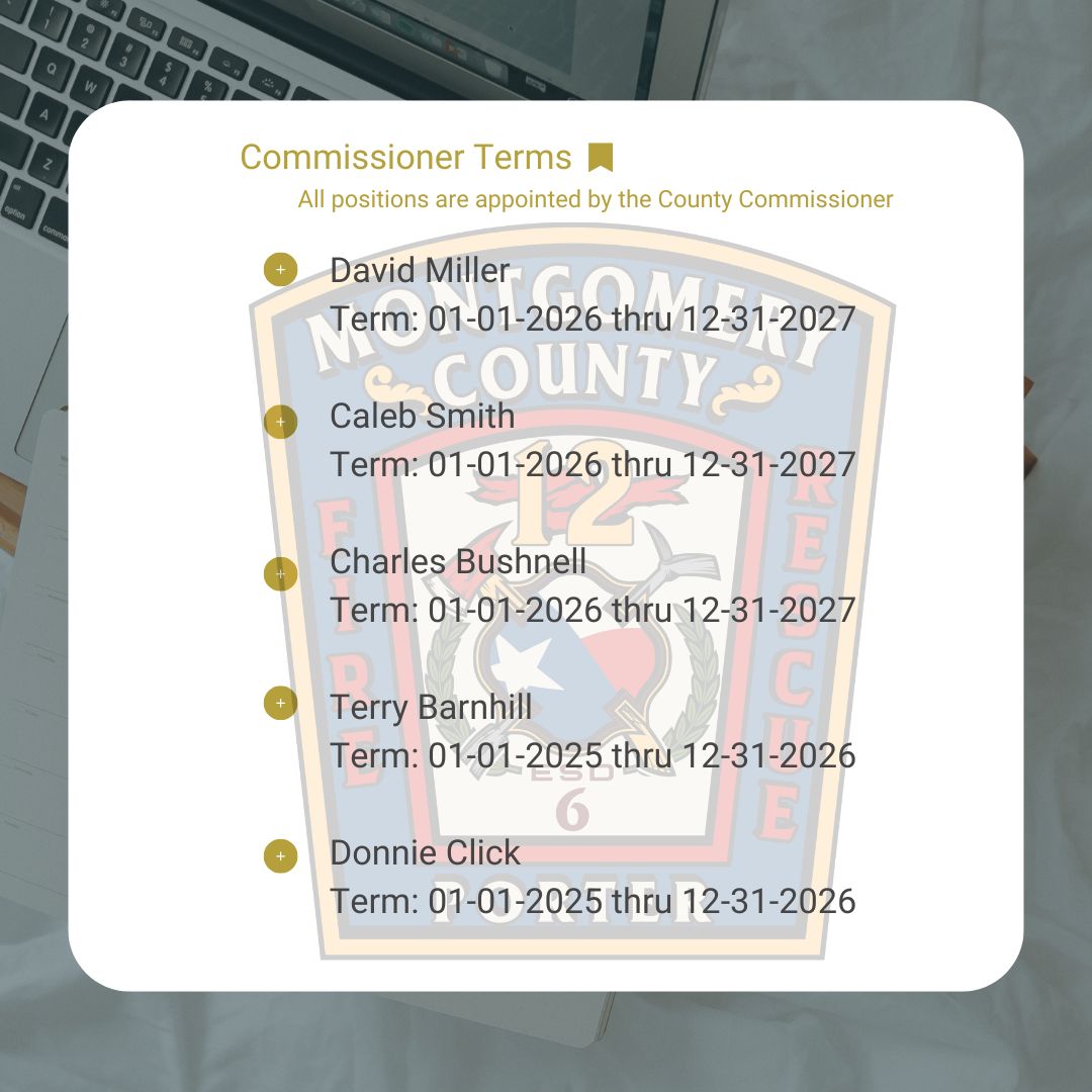 ESD Commissioners in Montgomery County are appointed by the Montgomery County Commissioner in Commissioners Court.